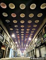 Lots of Printed windproof umbrellas hang high in the sky,Very beautiful.